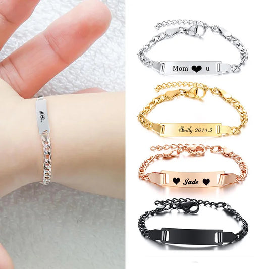 Personalized Baby Bracelet,Stainless Steel Engraved Name Date for Newborn Kids